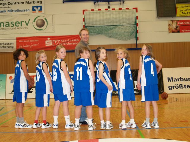 Hier sind wir mit unseren neuen Waldschultrikots und David Irnich, unserem Trainer.