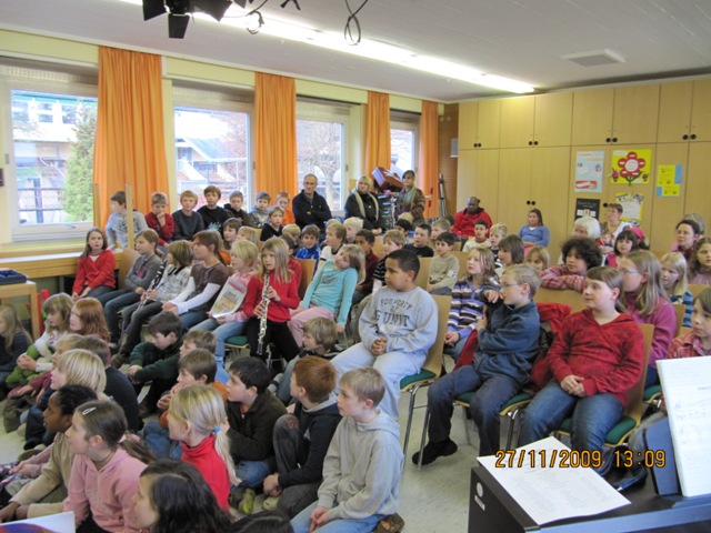 Gedichte, Lieder und vor allem Instrumente zum Kennen lernen und anhören: Gitarren, Klavier, Oboe, Klarinette, Trompete, alles das konnten die Kinder der 3. und 4. Schuljahre bestaunen und hören.